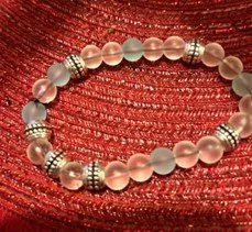 Jolies perles de cristal facettes BLANC GRIS ET ARGENT (élastique nylon) avec fermoir mousqueton