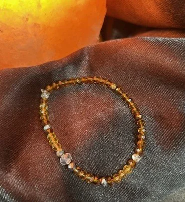 Nos perles de cristal à facettes de couleur ambre illumine le teint. (Elastique en nylon ultra résistant)