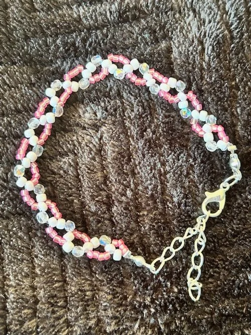 Bracelet en perle de rocailles tressé à la main en double fil élastique et avec fermoir ajustable