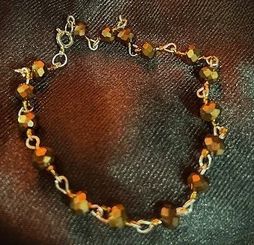 Nos perles de cristal à facettes de couleur caramel et gris argent brilles à votre poignet. (Elastique en nylon ultra résistant)